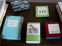 東京「ぽっぺん堂」で制作されて送られてくる豆本たちは風の卵の人気商品です。キャラクターの愛くるしさに思わず胸躍る『TEN LITTELE GINGERBREADMAN』、エンサイクロペディアのような函入り上製本『Words of Numbers』、小さい頁に俳味あふれる佐藤りえさんの句集『団栗交換日記』などなど、いずれも凝ったものばかり。